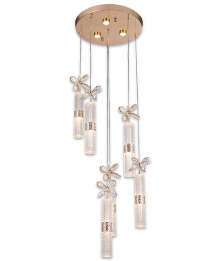 ÇUBUK KELEBEK GOLD 6’LI KRİSTAL LED SARKIT AVİZE 270-035-006 R FGD